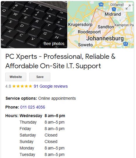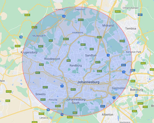 We service almost all of Gauteng, Including but not limited to Johannesburg, Johannesburg North, Johannesburg South, Midrand, West Rand, East Rand